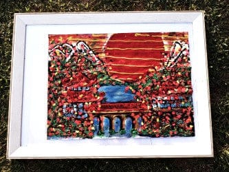 “Schlossing” – Water painting without water, created on a recycled laminated building sheet, strengthened and waterproofed for permanence.